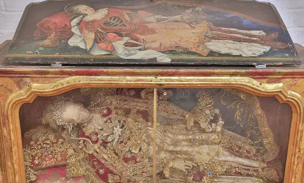 Mönche und Nonnen verehrten ganz unterschiedliche Heilige in ihren Klosterkirchen – Heilige sind an Altären, einzelnen Statuen, in Wand- und Deckengemälden zu sehen. Auch eine gläubige Fürstin wie die badische Markgräfin schuf sich ihren eigenen Andachtsort.