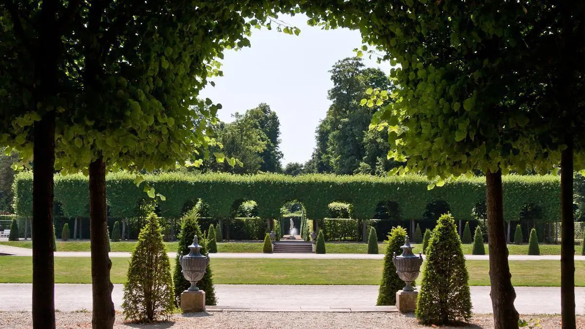 Blick in die Ferne: über den Orangeriegarten hin zum Apollotempel im Schwetzinger Schlossgarten.